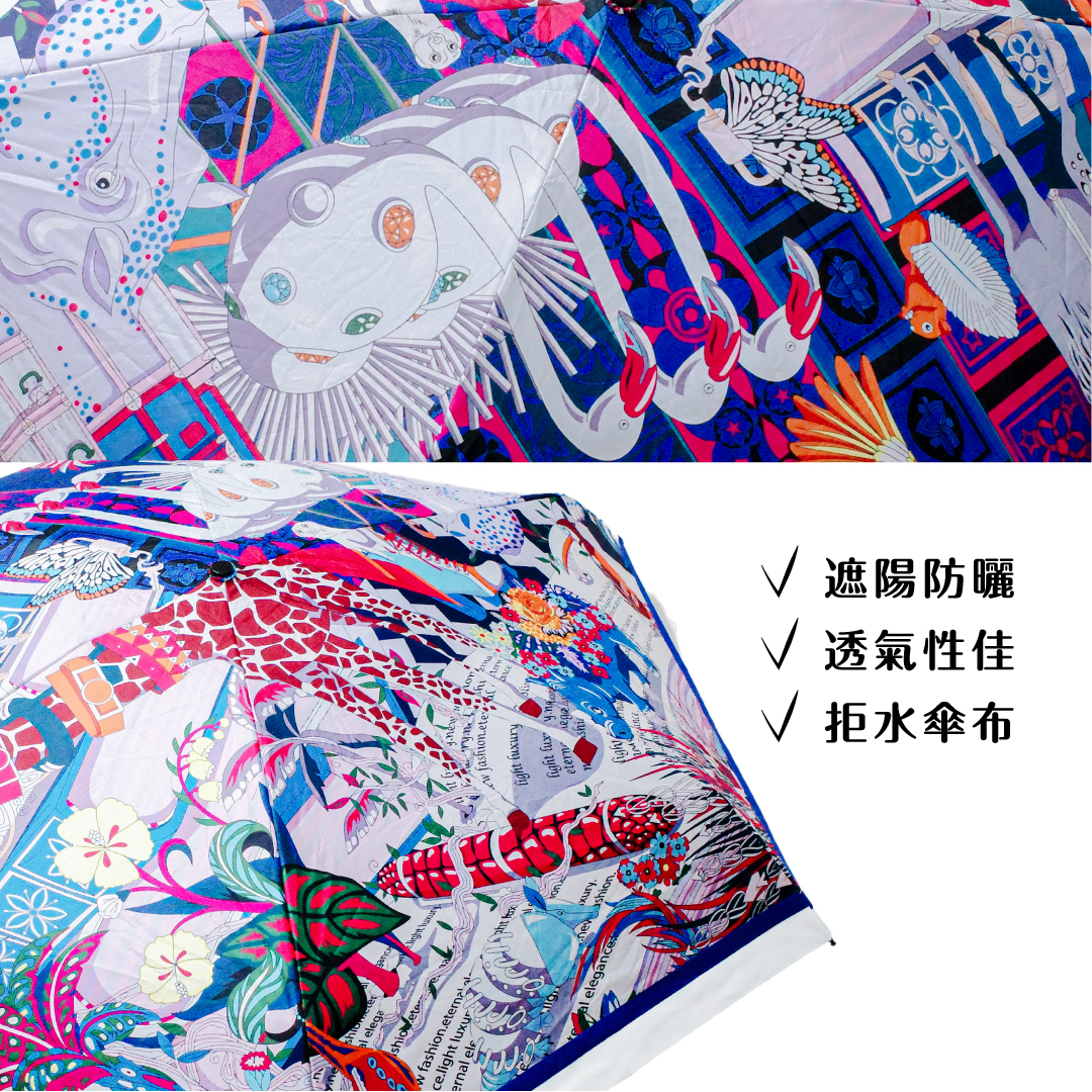 💛插畫輕便折傘+小提袋《動物嘉年華》