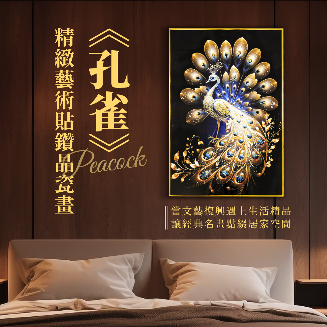 精緻藝術貼鑽晶瓷畫|《孔雀》