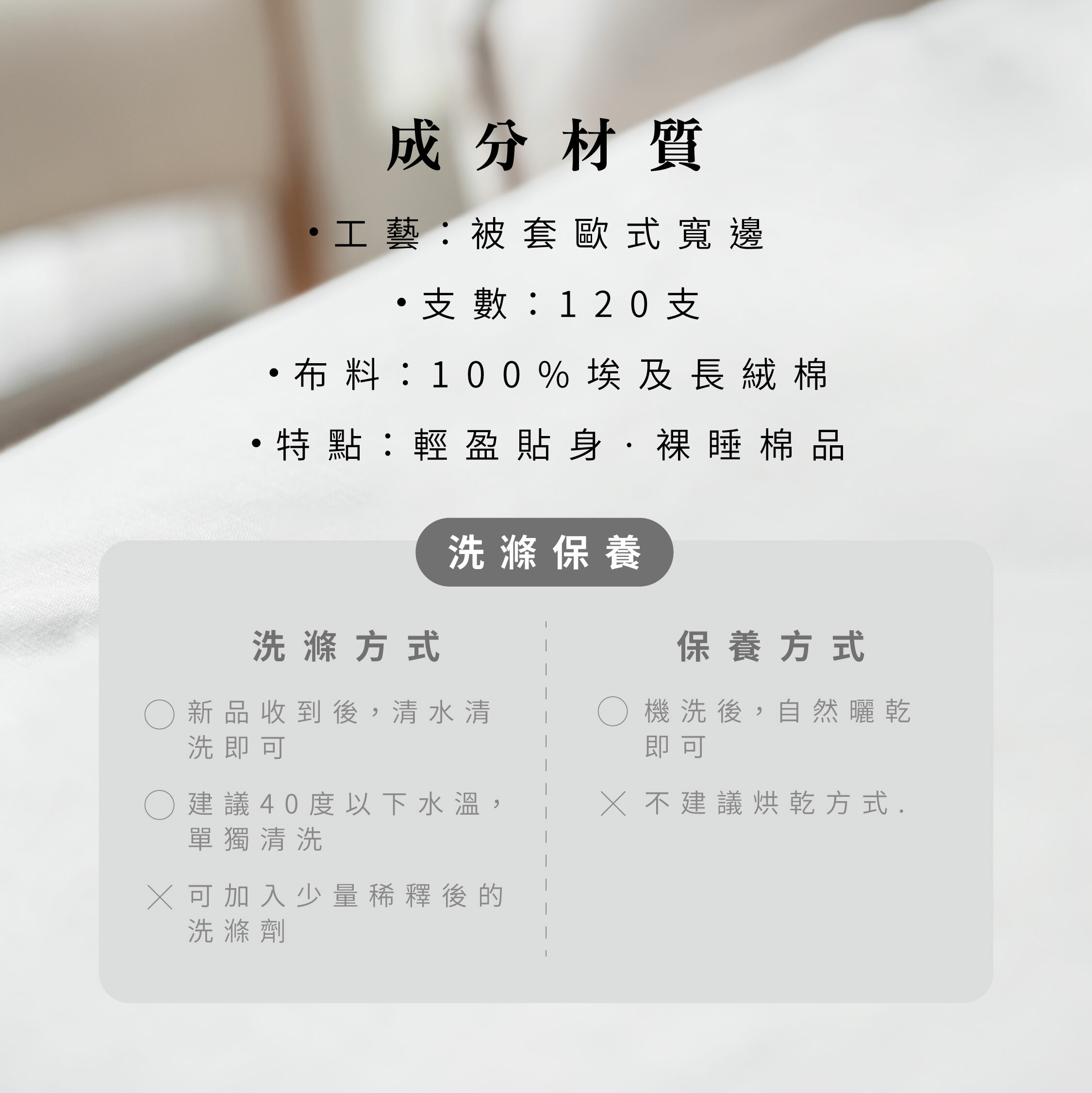❥ 特點:輕盈貼身 ·裸睡棉品
