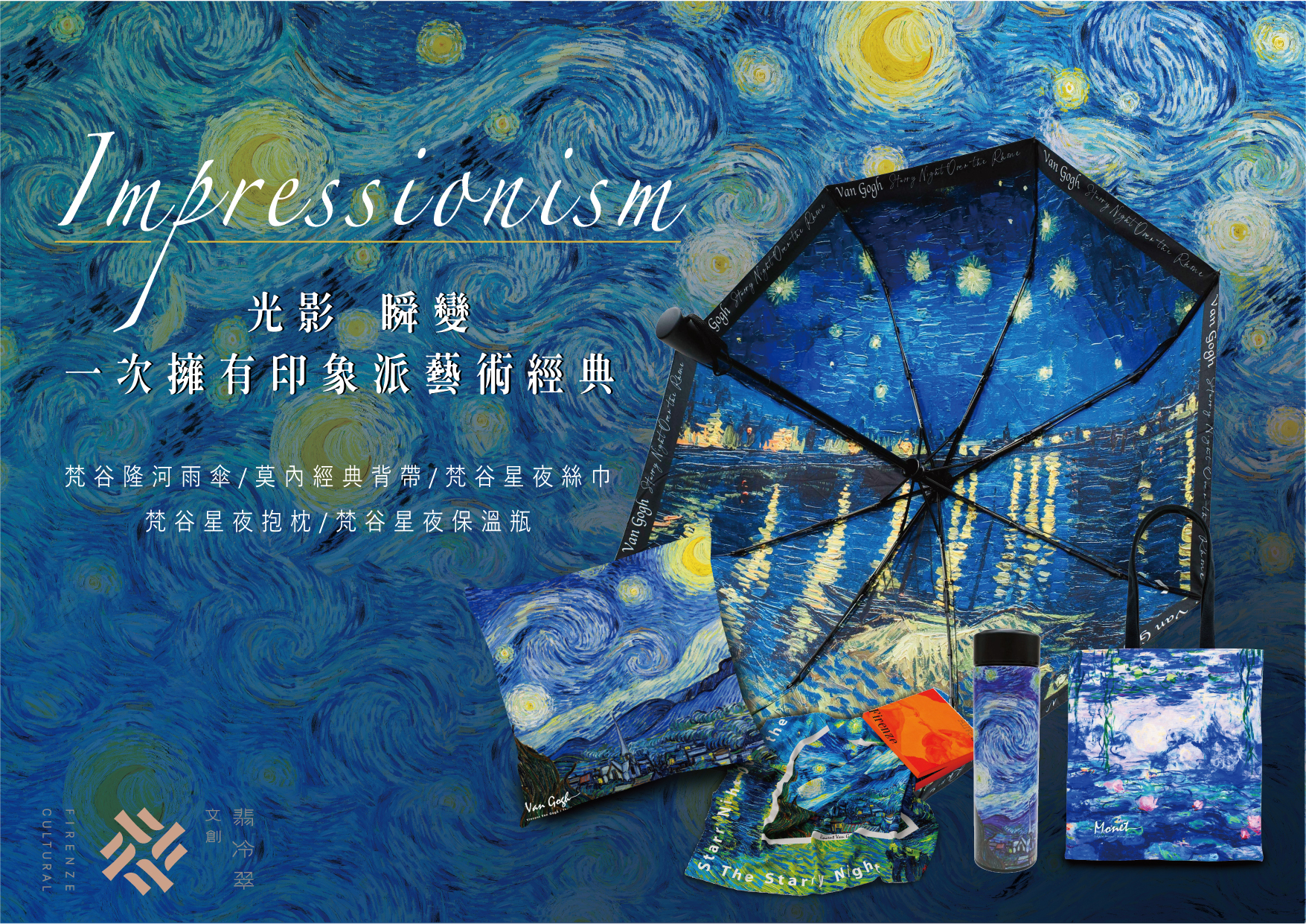 💛中絲巾|梵谷《星夜+隆河上的星夜》