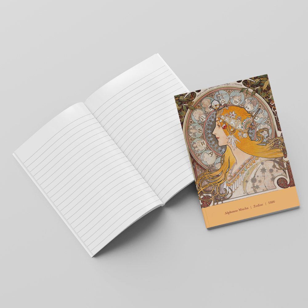 慕夏將十二星座,融入女人頭部後方的光環狀圓盤中,